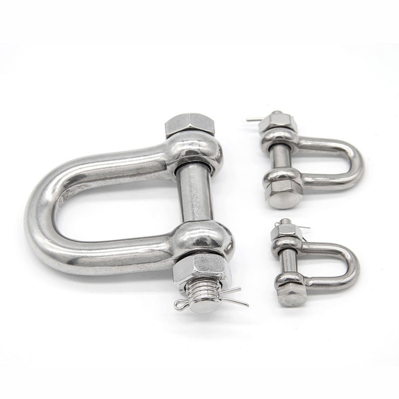 Herramientas de carga y descarga convenientes y eficientes: Los sujetadores de grilletes D largos de acero inoxidable tienen ventajas significativas en las operaciones de carga y elevación de buques.Puede mejorar significativamente la eficiencia de la carga y descarga de cargaEn las operaciones de elevación, los grilletes se utilizan como accesorios de extremo del aparejo, conectados directamente a los objetos elevados,o como herramientas de conexión entre el aparejo y los accesorios terminales, y se utilizan ampliamente en piezas de conexión que a menudo necesitan ser instaladas y desmontadas.